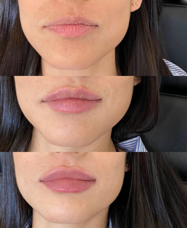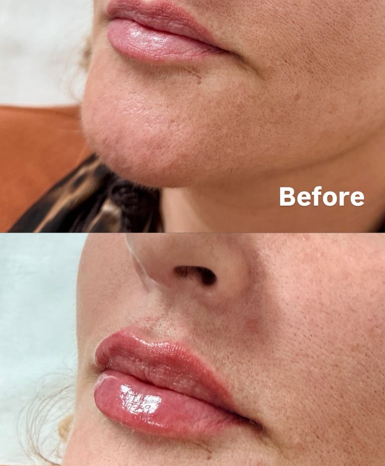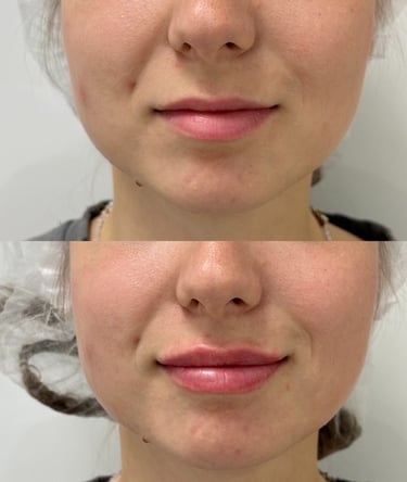 Hyaluronic acid lip fillers enhance volume, improve contour and moisturise the lips, providing a natural and balanced appearance.